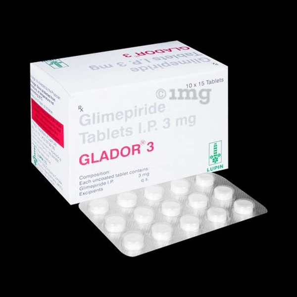Glador 3 Tablet belongs to a group of medicines called sulfonylureas and is used to treat type 2 diabetes mellitus in adults. It helps control blood sugar levels in people with diabetes thereby preventing serious complications of diabetes such as kidney damage and blindness.