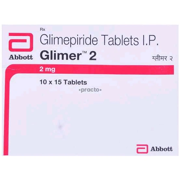 Glimer 2 Tablet belongs to a group of medicines called sulfonylureas and is used to treat type 2 diabetes mellitus in adults. It helps control blood sugar levels in people with diabetes thereby preventing serious complications of diabetes such as kidney damage and blindness.