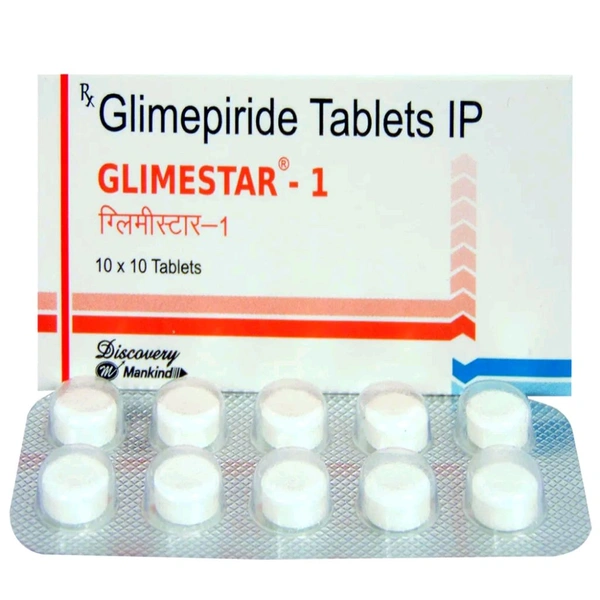 Glimestar-1 Tablet is used to lower raised blood sugar levels in Type 2 diabetes mellitus (non-insulin-dependent diabetes mellitus - NIDDM). It contains Glimepiride which acts on insulin-secreting cells called beta cells inside the pancreas and activates calcium channels on cells which lets insulin pass out of the cell. This insulin then makes each cell in the body take up glucose and utilize it, thus lowering raised blood glucose. It may cause side effects such as allergic reaction (skin rash, hives, sensitivity to sun rays), liver dysfunction (jaundice, bile duct blockage, and hepatitis), seizures, or low glucose levels. Before taking this medicine, you should tell your doctor if you are allergic to any of its components or if you are pregnant/breastfeeding, and about all the medications you are taking and pre-existing medical conditions.