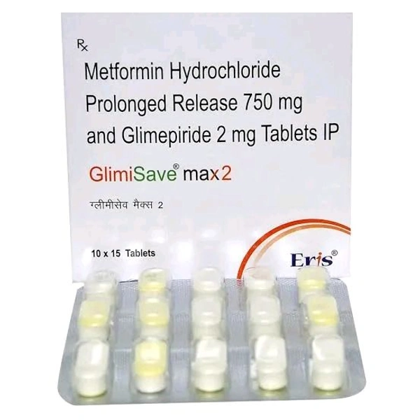 Glimisave Max 2 Tablet is used to treat type 2 diabetes. It contains Glimepiride and Metformin, which work by decreasing the amount of glucose absorbed from the food and the amount of glucose made by the liver. It helps the pancreas produce insulin and enables the body to use it efficiently.