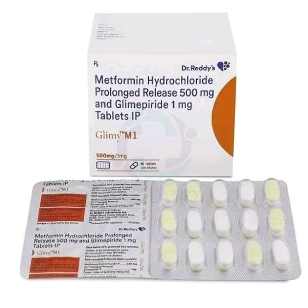 Glimy M 1 Tablet PR is a combination of two medicines: glimepiride and metformin. This medicine is used in the treatment of type 2 diabetes mellitus (DM). It improves blood glucose levels in adults when taken along with a proper diet and regular exercise.
