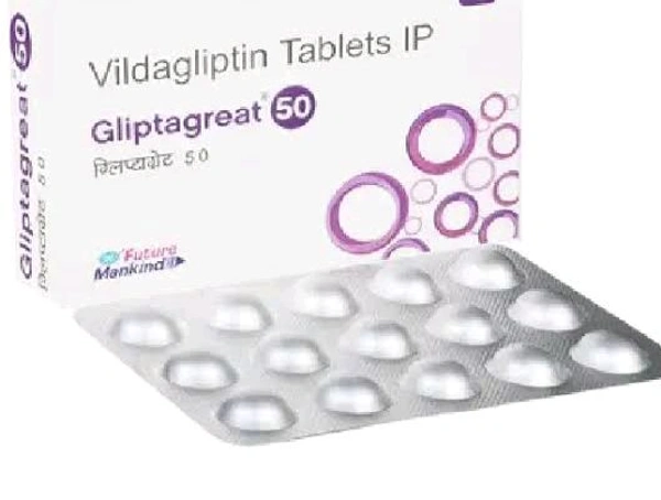Gliptagreat 50 Tablet is used in the treatment of type 2 diabetes, especially in patients whose blood sugar levels are not controlled by diet and exercise alone. It may be used alone or in combination with other medicines. It contains Vildagliptin, which increases the level of incretin hormone (released after the meal to stimulate the release of insulin from the pancreas) so that sufficient insulin can be produced from the pancreas to lower raised blood sugar levels. In some cases, it may cause side effects such as dizziness, nausea, headache, excessive sweating, low blood sugar levels, and trembling. Before taking this medicine, you should tell your doctor if you are allergic to any of its components or if you are pregnant/breastfeeding, and about all the medications you are taking and pre-existing medical conditions