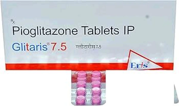 Glitaris 7.5 Tablet is a medicine used to treat type 2 diabetes mellitus in adults. It helps control blood sugar levels in people with diabetes. This helps to prevent serious complications of diabetes like kidney damage and blindness.