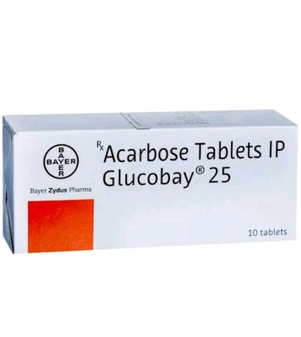 Glucobay 25 Tablet is used to treat people with type 2 diabetes mellitus. It helps lower blood sugar levels after meals. It belongs to a group of medicines known as alpha-glucosidase inhibitors. This medicine is usually prescribed in combination with other diabetes medications.