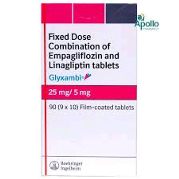 Glyxambi 25mg/5mg Tablet is a combination medicine that helps control blood sugar levels. This medicine is used with diet and exercise to improve blood sugar control in adults with type 2 diabetes mellitus. It helps properly utilize insulin, thereby lowering the blood sugar level.