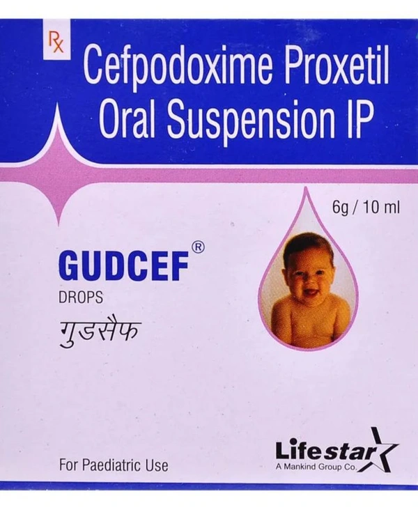 Gudcef Drops is used to treat bacterial infections such as respiratory tract infections, including infections of the lungs, throat, tonsils, and sinus cavities in children. It contains Cefpodoxime proxetil, which is a broad-spectrum antibiotic effective against both gram-positive and gram-negative bacteria. It works by preventing the formation of bacterial cell covering (cell wall), which is necessary for their survival. Thereby, it kills the bacteria and helps in treating bacterial infections.