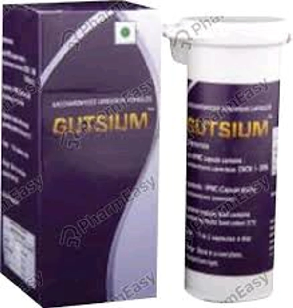 Gutsium Capsule is a nutritional supplement fortified with saccharomyces cerevisiae, a probiotic bacterium. It survives in the stomach acid and colonises the intestinal tracts. It promotes the health of the intestinal tract, encourages a healthy gut flora balance, and supports a balanced inflammatory response. This probiotic supplement enhances gut health, improves immune function, and alleviates constipation and diarrhoea.