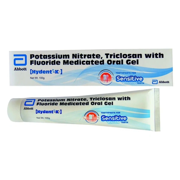 The Hydent-K Sensitive Teeth Toothpaste, 100 gm, is an advanced medicated oral gel that's crafted to tackle several dental issues such as tooth sensitivity, dental caries and hypersensitivity. What sets the Hydent K apart is its unique blend of ingredients. It contains potassium nitrate, a go-to compound for relief from tooth sensitivity caused by issues such as tooth decay or gum disease.