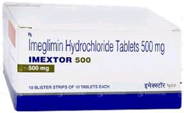 Imextor 500 Tablet is a medicine used to treat type 2 diabetes mellitus. It is used together with a healthy diet and regular exercise to control blood sugar levels. This helps to prevent serious complications of diabetes like kidney damage and blindness.