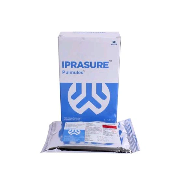 Iprasure LS Pulmules 2.5 ml is used to treat or prevent symptoms of chronic obstructive pulmonary disease (COPD), like shortness of breath, coughing or wheezing (whistling sound while breathing). It contains Levosalbutamol and Ipratropium bromide, which works by relaxing muscles and widening the airways of the lungs. Thereby, it allows us to breathe easily. Some people may experience headache, sore throat, dry mouth, runny or stuffy nose, pain, cough with mucus, sneezing, chest tightness, difficulty in breathing, dizziness, nervousness, tiredness, irregular heartbeats and vomiting. Before using this medicine, you should tell your doctor if you are allergic to any of its components or if you are pregnant/breastfeeding, and about all the medications you are taking and pre-existing medical conditions.