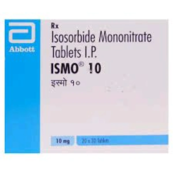 Ismo 10 Tablet is used to prevent heart-related chest pain (angina). It works by relaxing and widening blood vessels so blood can flow more easily to the heart. This medicine will not treat an angina attack that has already begun.