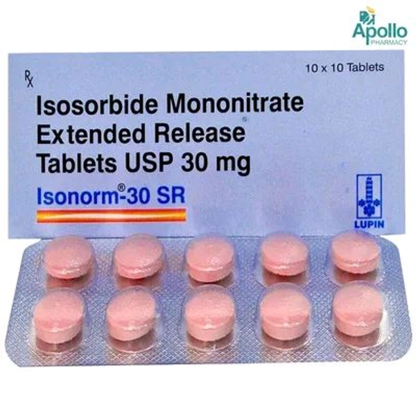 Isonorm 30 SR Tablet is used to prevent heart-related chest pain (angina). It works by relaxing and widening blood vessels so blood can flow more easily to the heart. This medicine will not treat an angina attack that has already begun