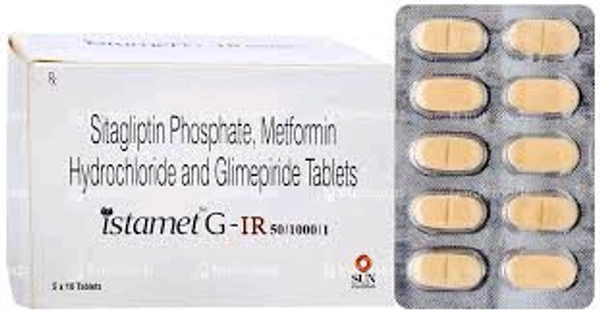 Istamet 50mg/500mg Tablet is a combination medication containing Sitagliptin and Metformin. It is primarily used for managing type 2 diabetes mellitus by improving blood sugar control in adults. This tablet helps regulate blood sugar levels effectively when diet and exercise alone are insufficient.
