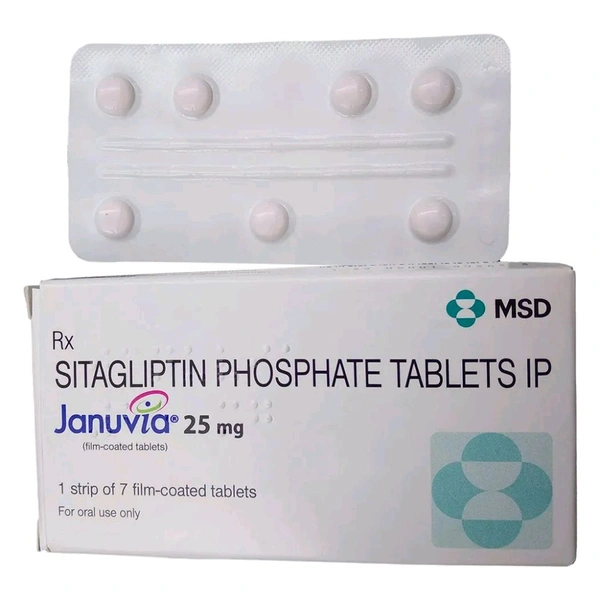 Januvia 25 mg Tablet is used to reduce high blood sugar levels in patients who consistently follow a balanced diet and exercise. It works by increasing the amount of insulin in the body. It may cause side effects such as upper respiratory tract infections, headaches, and nasopharyngitis (inflammation of nasal passages). Take it as prescribed by your doctor.