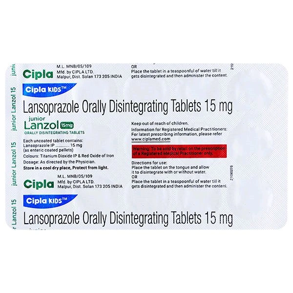 Junior Lanzol 15mg Tablet DT is used for the treatment of peptic ulcer disease (gastric and duodenal ulcers), reflux esophagitis or gastroesophageal reflux disease (GERD). It is also used to treat a disease associated with excessive acid production in the stomach known as Zollinger Ellison syndrome (ZES).