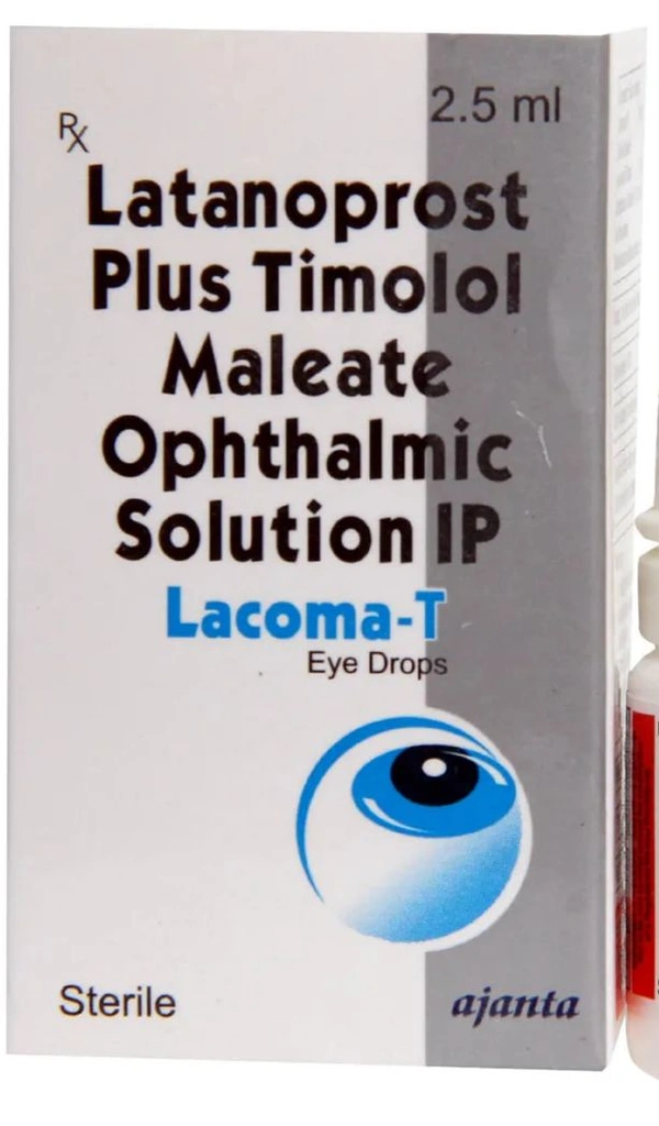 Lacoma T Eye Drops is used to treat ocular hypertension and glaucoma. It contains Latanoprost and Timolol which work by decreasing the fluid production in the eye, thereby lowering the pressure. In some cases, this medicine may cause side effects such as burning or stinging sensation, itching, irritation, and pain. Inform the doctor if you are pregnant or breastfeeding, taking any other medication, or have any pre-existing medical conditions.