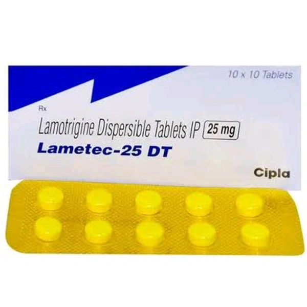 Lametec 25 DT Tablet is an anti-epileptic medication that is used to treat two conditions, epilepsy and bipolar disorder. It works by blocking the signals in the brain that trigger epileptic seizures (fits) and in another way to prevent extreme mood swings.