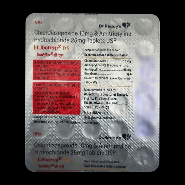 Libotryp DS 25 mg/10 mg Tablet works by affecting the balance of certain chemicals (such as serotonin) in the brain. It helps improve mood and feelings of wellbeing, relieve anxiety and tension, helps you sleep better, and increase your energy level. It is an effective antidepressant but may cause drowsiness.