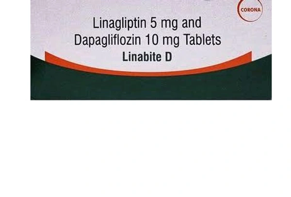 Linabite D Tablet is an antidiabetic medicine used to treat Type II Diabetes. It contains Dapagliflozin (sodium-glucose cotransporter-2 inhibitors) and Linagliptin (dipeptidyl peptidase-4 inhibitor). It reduces the sugar production by liver cells and delays sugar absorption from the intestines. Thus, It helps control blood sugar levels. Linabite D Tablet may cause side effects such as diarrhoea, headache, dizziness, hypoglycaemia, nausea, and vomiting.