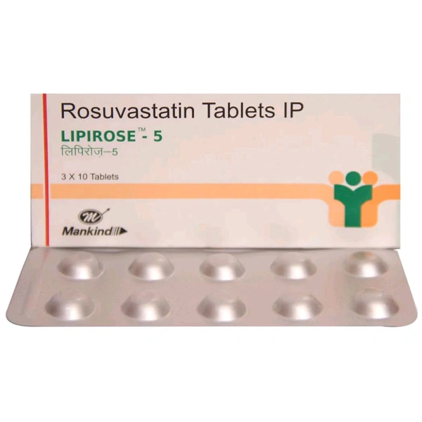 Lipirose-5 Tablet is used in the treatment of high cholesterol and to reduce the risk of stroke and heart attack. It contains Rosuvastatin, which slows down cholesterol production in the body and decreases the amount of cholesterol that may build up on the arteries walls and block blood flow to brain, heart and other body parts. Thus, it lowers cholesterol and fats levels and helps to prevent stroke, heart disease and heart attack. It may cause side effects such as myalgia (muscle pain), asthenia (lack of energy), nausea, headache, abdominal pain, muscle pain, weakness, and daytime drowsiness. Before taking this medicine, you should tell your doctor if you are allergic to any of its components or if you are pregnant/breastfeeding, and about all the medications you are taking and pre-existing medical conditions