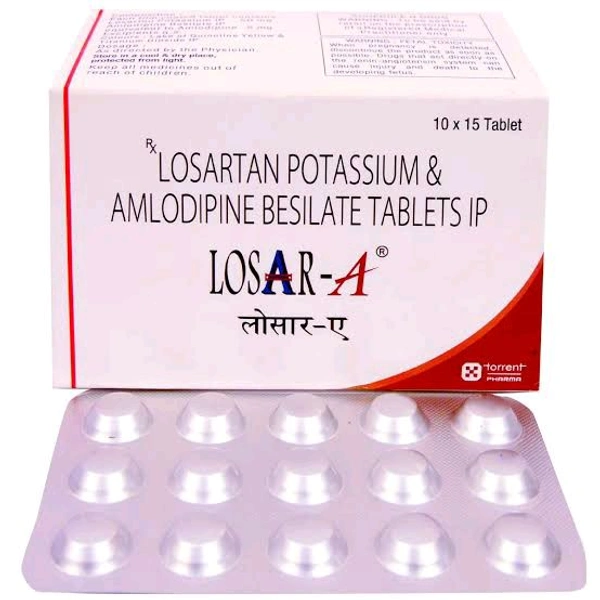 Losar-A Tablet is used to treat high blood pressure (hypertension). It contains Losartan and Amlodipine, which lowers the blood pressure and increases the blood flow by preventing the narrowing of blood vessels.
