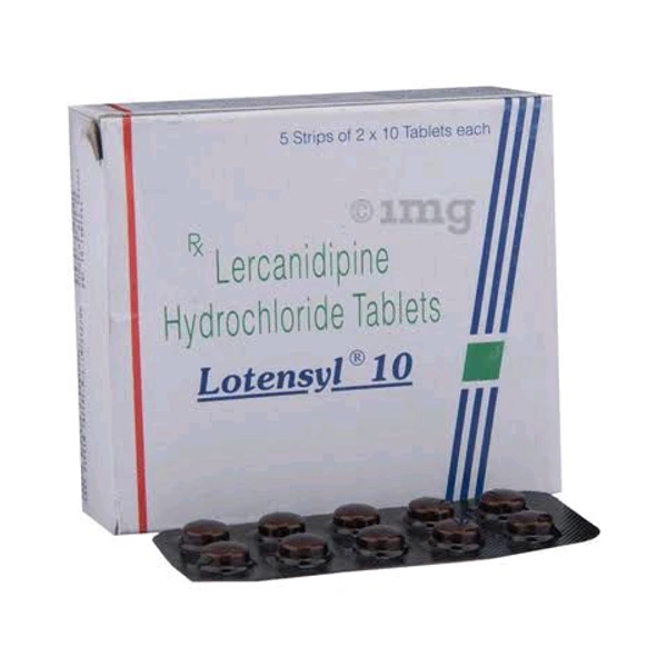 Lotensyl 10 Tablet is a medicine used to treat high blood pressure (hypertension). It belongs to a group of medicines known as calcium channel blockers and helps to lower blood pressure and reduce the workload of the heart. This helps prevent heart attacks and strokes.