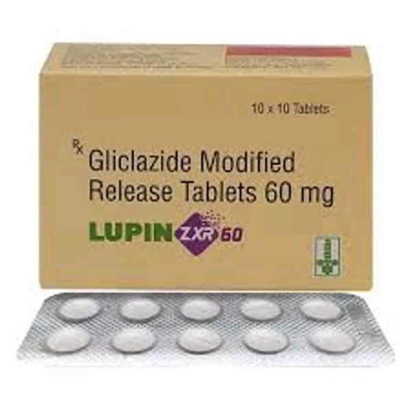 Lupin ZXR 60 Tablet is a medicine used to treat type 2 diabetes mellitus in adults. It belongs to a group of medicines called sulfonylureas and helps control blood sugar levels in people with diabetes. This helps to prevent serious complications of diabetes like kidney damage and blindness.