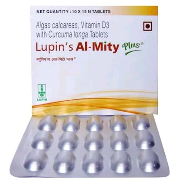 LUPIN'S AL MITY PLUS Tablet is a dietary supplement helps to protect bones from age related bone loss and increases bone density. It contains calcium, vitamin D3, curcuma longa extract as active ingredients. Calcium helps to manage or manage low blood calcium levels and is essential for bones and teeth.