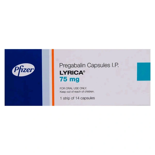 Lyrica 75mg Capsule is used in the prevention of neuropathic pain, epilepsy (seizure episodes), fibromyalgia (musculoskeletal pain), and neuralgia (pain due to damaged/irritated nerve). It contains Pregabalin, which works by calming the damaged or overactive nerves in the body that may cause nerve or musculoskeletal pain or seizures. Besides this, it also decreases the number of pain signals sent out by damaged nerves in the body. It may cause side efffects such as dizziness, somnolence (sleepiness/drowsiness), dry mouth, oedema (fluid overload with swelling), blurred vision, weight gain and abnormal thinking (difficulty with concentration/attention). Before taking this medicine, you should tell your doctor if you are allergic to any of its components or if you are pregnant/breastfeeding, and about all the medications you are taking and pre-existing medical conditions.