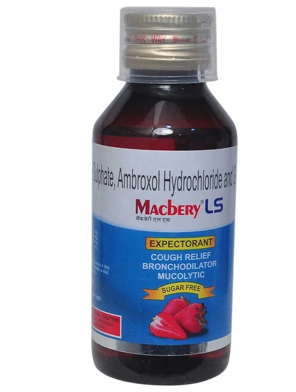 Macbery LS Expctorant is used to treat cough associated with mucus. It works by relaxing muscles and widening the airways of the lungs. It thins and loosens phlegm (mucus) in the lungs, windpipe, and nose. Thereby, helping to cough out easily. It works by increasing the volume of fluid in the airways, reducing the stickiness of mucus, and helping to remove it from the airways. Some people may experience nausea, vomiting, drowsiness, headache, dizziness, skin rash, tremor, stomach upset and diarrhoea. Before taking this medicine, you should tell your doctor if you are allergic to any of its components or if you are pregnant/breastfeeding, and about all the medications you are taking and pre-existing medical conditions.