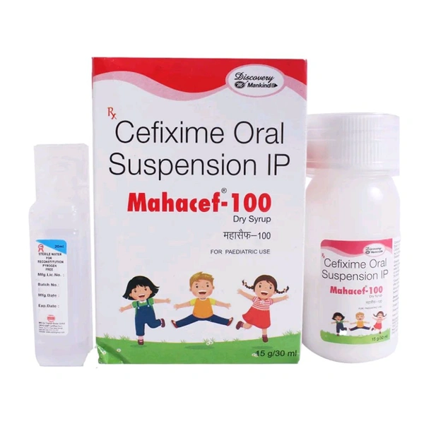 Mahacef 100mg Dry Syrup is used to treat bacterial infections in children. It contains Cefixime, which works by inhibiting cell wall synthesis; it weakens and destroys the bacterial cell wall, leading to death. As a result, it helps to treat bacterial infections. Mahacef 100mg Dry Syrup may cause side effects, including diarrhoea, nausea, loose stools, abdominal pain, dyspepsia, indigestion, and vomiting.