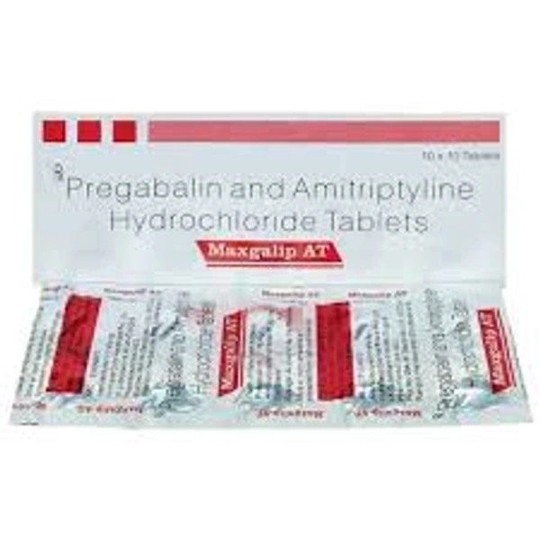 Maxgalip AT Tablet is a combination of two medicines: Pregabalin and Amitriptyline. This medicine is useful in the treatment of nerve pain (neuropathic pain). This medicine calms the damaged or overactive nerves by acting on the patient's brain, thereby decreasing the pain sensation.