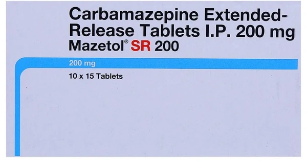 Mazetol SR 200 Tablet is used to treat epilepsy (fits) and trigeminal neuralgia (pain in the face's nerves). It contains Carbamazepine, which decreases the excessive and abnormal nerve activity in the brain, thereby controlling seizures. In some cases, you may experience certain common side effects such as dizziness, tiredness, uncontrolled movements, nausea, headache, changes in liver enzymes or low white blood cells count, and minor skin reactions. Before using this medicine, you should tell your doctor if you are allergic to any of its components or if you are pregnant/breastfeeding, and about all the medications you are taking and pre-existing medical conditions.