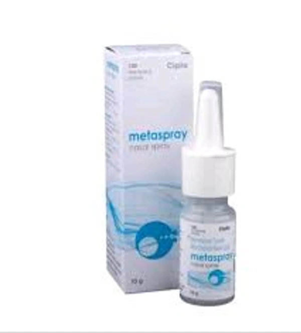 Metaspray Nasal Spray is a medicine used to prevent and treat allergic symptoms like sneezing and runny nose due to allergies, nasal congestion, and nasal polyps. It works by reducing swelling and irritation in your nose and belongs to a group of medicines called corticosteroids.
