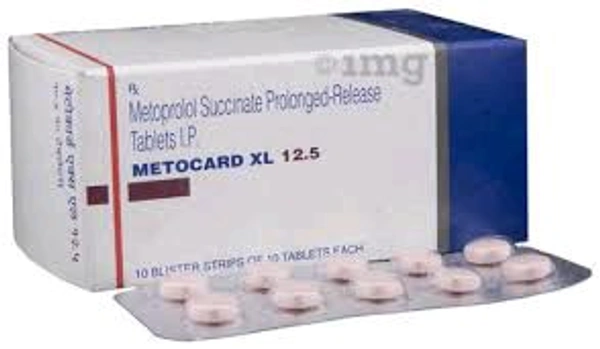 Metocard XL 12.5 Tablet belongs to a group of medicines called beta-blockers. It is used to treat high blood pressure (hypertension), angina (heart-related chest pain), and irregular heart rhythms (arrhythmia). It also helps prevent migraines, future heart attacks, and strokes.