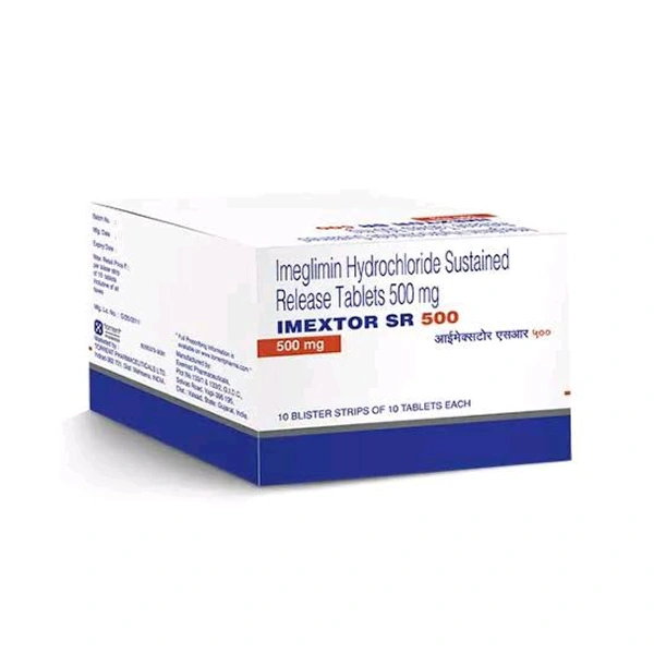 Imextor SR 1000 Tablet is a medicine used to treat type 2 diabetes mellitus. It is used together with a healthy diet and regular exercise to control blood sugar levels. This helps to prevent serious complications of diabetes like kidney damage and blindness.