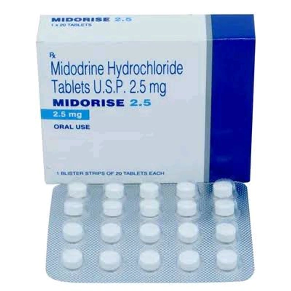 Midorise 2.5 Tablet is used to treat low blood pressure (hypotension). It is used in patients who experience dizziness due to low blood pressure while standing up suddenly from a sitting or lying position. This medicine causes tightening of blood vessels and results in an elevation of your blood pressure.