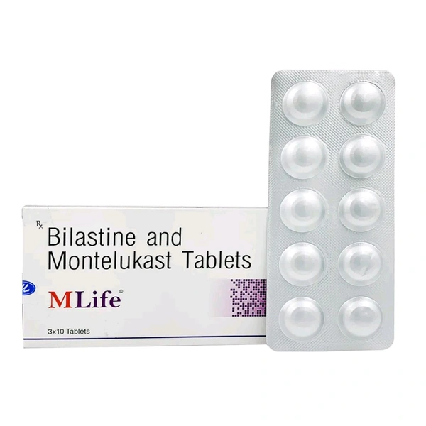 Mlife Tablet is used to treat symptoms of allergic conditions like sneezing, runny nose, congestion, stuffy nose or watery eyes. It works by blocking the action of chemicals that cause inflammation, increased mucus and allergic reactions. In some cases, this medicine may cause side effects such as nausea, vomiting, dryness in the mouth, diarrhoea, dizziness, and weakness. Before taking this medicine, inform the doctor if you are pregnant or breastfeeding, taking any other medication, or have any pre-existing medical conditions.