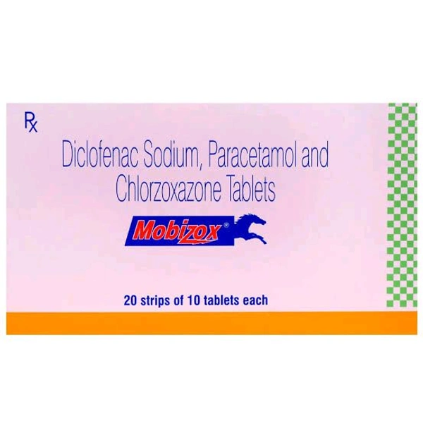 MOBIZOX TABLET is a combination of Chlorzoxazone, Diclofenac sodium and Paracetamol, which belongs to the group of medicines called Muscle relaxants, Analgesics and Anti-pyrectics and Analgesics. It is used to manage painful muscle spasms associated with musculoskeletal conditions and provides effective relief from headaches, toothache, period pains, rheumatic pain, tendon pain, gout, soft tissue injuries, backache, arthritic pain, sprains, strains, frozen shoulder, muscle pain.