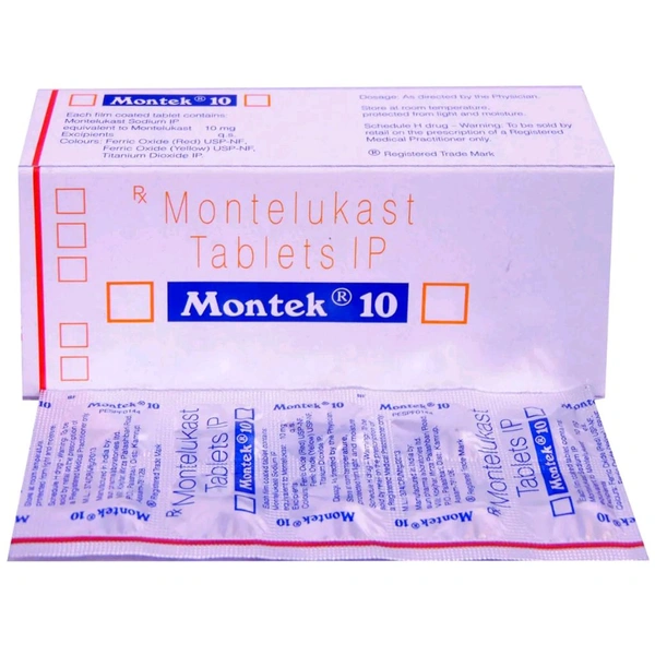 Montek 10 Tablet is a prescription medicine used for asthma prevention and for the treatment of allergy symptoms such as sneezing and runny nose. It reduces inflammation in the airways and makes breathing easier.