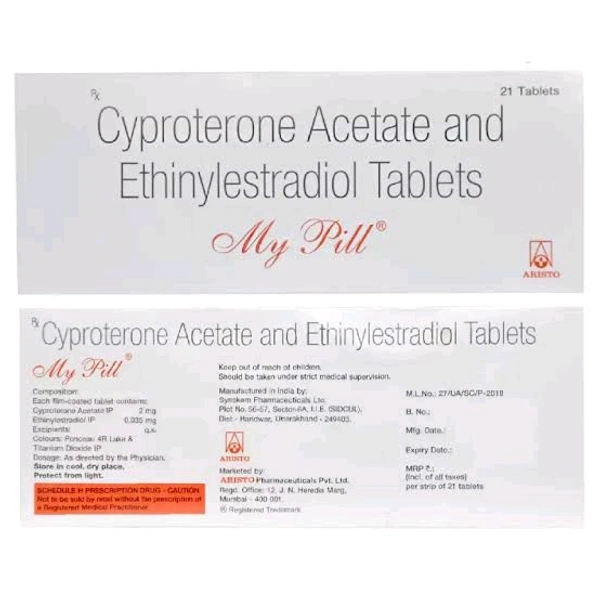 MY Pill Tablet is a combination of two hormonal medicines used to treat symptoms of polycystic ovary syndrome (PCOS), such as excessive hair growth (hirsutism), acne, and irregular periods. It also works as a contraceptive; hence, avoid using any other contraceptive pill.
