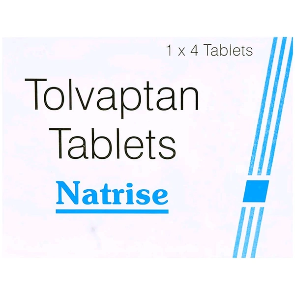 Natrise Tablet is used to treat low sodium levels and autosomal dominant polycystic kidney disease. It contains Tolvaptan which works by increasing the amount of water released from the body via urine. In some cases, this medicine may cause side effects such as dizziness, headache, dry mouth, fatigue, diarrhoea, thirst and increased urge to urinate. Inform the doctor if you are pregnant or breastfeeding, taking any other medication, or have any pre-existing medical conditions