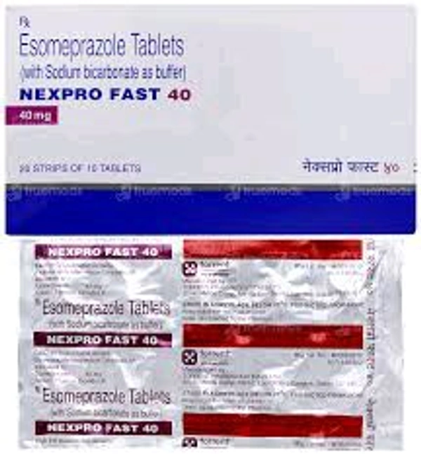 Nexpro Fast 40 Tablet is used to treat conditions related to excessive stomach acid production, such as gastroesophageal reflux disease (GERD), peptic ulcer disease, and Zollinger-Ellison syndrome. It reduces the amount of acid produced in the stomach and provides relief from symptoms and promotes healing.