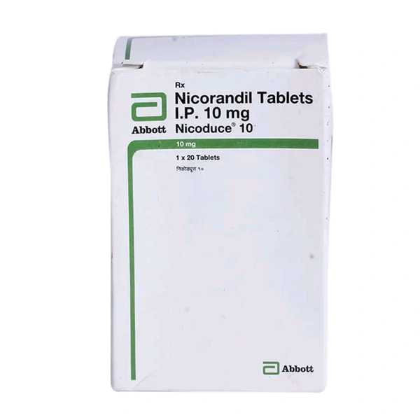 Nicoduce 10 Tablet is used to treat angina pectoris (heart-related chest pain). It contains Nicorandil which works by widening blood vessels and reducing the heart's workload by making it easier for the heart to pump blood around the body. In some cases, this medicine may cause side effects such as headache, nausea, vomiting, dizziness, and weakness. Inform the doctor if you are pregnant or breastfeeding, taking any other medication, or have any pre-existing medical conditions.