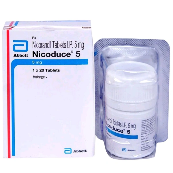 Nicoduce 5 Tablet is used to treat angina pectoris (heart-related chest pain). It contains Nicorandil which works by widening blood vessels and reducing the heart's workload by making it easier for the heart to pump blood around the body. In some cases, this medicine may cause side effects such as headache, nausea, vomiting, dizziness, and weakness. Inform the doctor if you are pregnant or breastfeeding, taking any other medication, or have any pre-existing medical conditions.