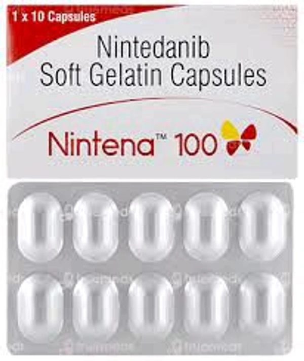 Nintena 100mg Soft Gelatin Capsule is used in the treatment of idiopathic pulmonary fibrosis and non-small cell lung cancer. It works by targeting certain pathways involved in the growth and progression of these diseases and helps to stop or slow the spread of cancer cells.