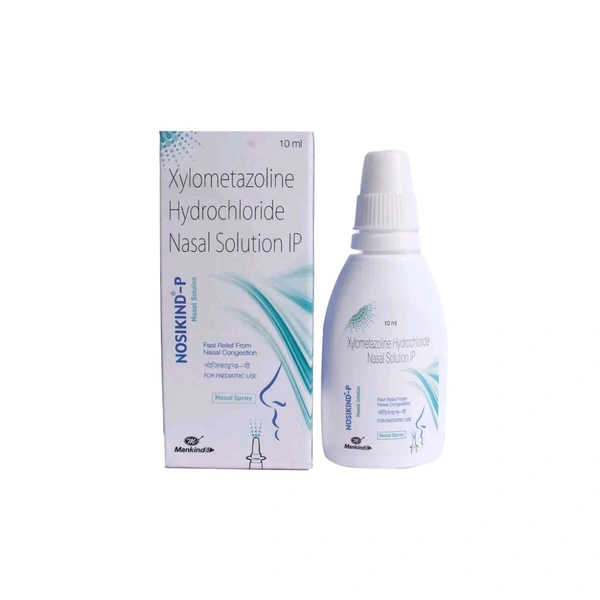 Nosikind-P Nasal Spray is used to treat nasal congestion (stuffy nose) caused by sinus irritation, allergies, and the common cold. It contains Xylometazoline which works by narrowing the blood vessels and thus provides temporary relief from nasal congestion and blockage. In some cases, this medicine may cause side effects such as burning sensation, dry nose, and sneezing. Before using this medicine, inform the doctor if you are pregnant or breastfeeding, taking any other medication, or have any pre-existing medical conditions