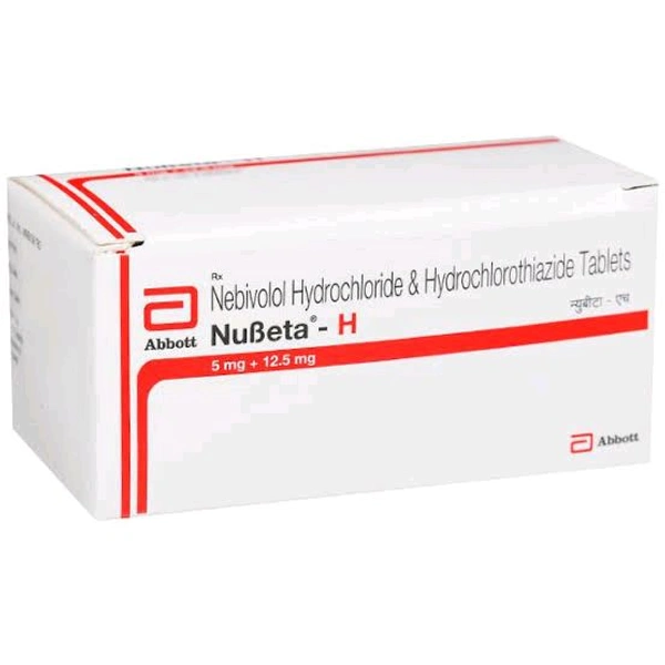 Nubeta H Tablet is used to treat hypertension (high blood pressure) and reduce the risk of stroke in patients with high blood pressure. It is a combination medication generally used when a single medicine cannot control high blood pressure. It contains Nebivolol and Hydrochlorothiazide, which lowers heart rate and makes the heart more efficient at pumping blood throughout the body. It removes excess water and electrolytes from the body. It also relaxes blood vessels and improves blood flow over time. Thus, lowers blood pressure. It may cause side effects such as nausea, constipation, diarrhoea, fatigue, headache, dizziness, decreased potassium level in the blood, breathlessness, swelling of hands and feet, or paresthesia (burning sensation of the skin).