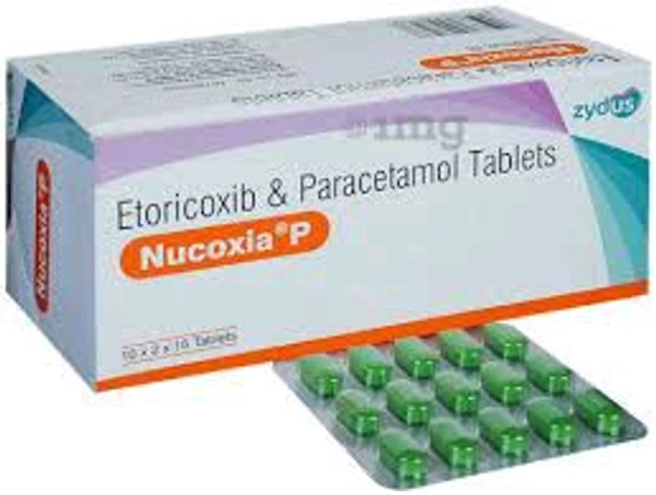 Nucoxia P Tablet is a pain-relieving medicine. It is used to reduce pain and inflammation in conditions like rheumatoid arthritis, ankylosing spondylitis, and osteoarthritis. It may also be used to relieve muscle pain, back pain, toothache, or pain in the ear and throat.