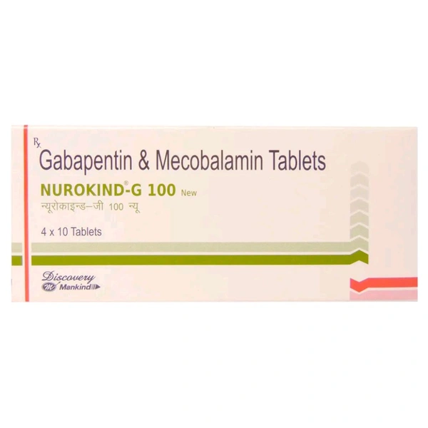 Nurokind-G 100 New Tablet is used to treat partial seizures (epilepsy) and various conditions of nerve pain/damage like post-herpetic neuralgia and restless leg syndrome in adults and children above 3 years of age. It contains Gabapentin and Mecobalamin (a form of vitamin B12), which decreases the abnormal excitement of chemical messenger in the brain. Also, it helps rejuvenate and protect damaged nerve cells. Thus, it provides relief from neuropathic pain caused due to nerve damage and other neurological disorders. It may cause side effects such as dizziness, tiredness, sleepiness and uncoordinated body movements. Before taking this medicine, you should tell your doctor if you are allergic to any of its components or if you are pregnant/breastfeeding, and about all the medications you are taking and pre-existing medical conditions.